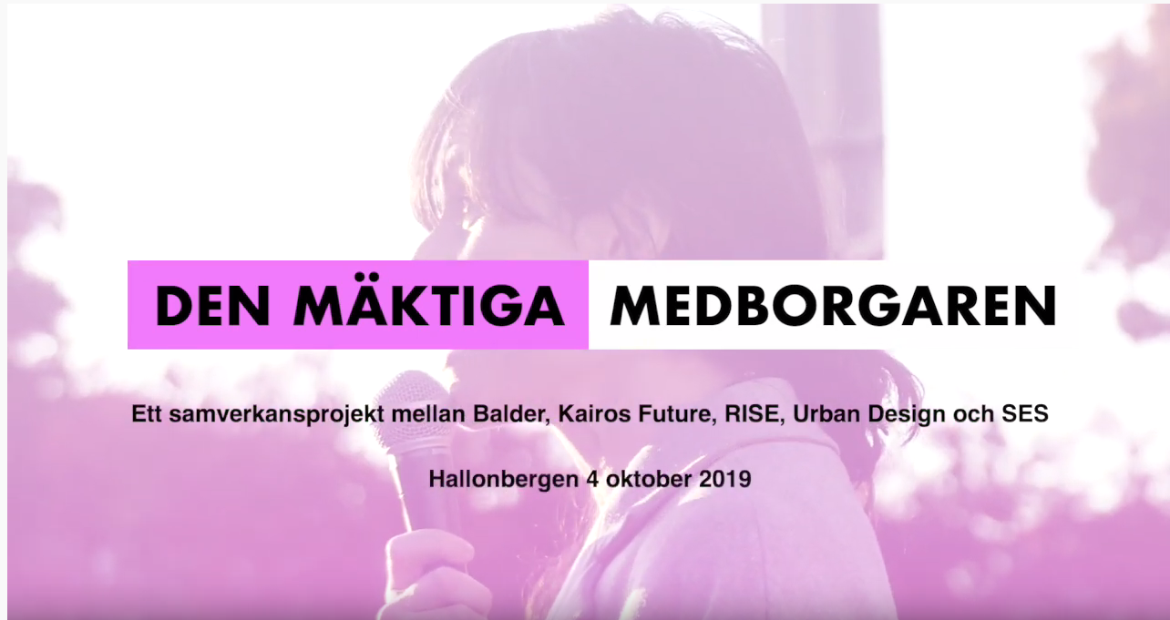 Den 4:e oktober hölls seminariet "Den Mäktiga Medborgaren" i Hallonbergen centrum, ett samarbete mellan Urban Design, RISE, Balder, Kairos Future, Elin Strand Ruin och Marabouparken. Här finns en film från den spännande eftermiddagen! Vi fortsätter samtalet på nya platser....