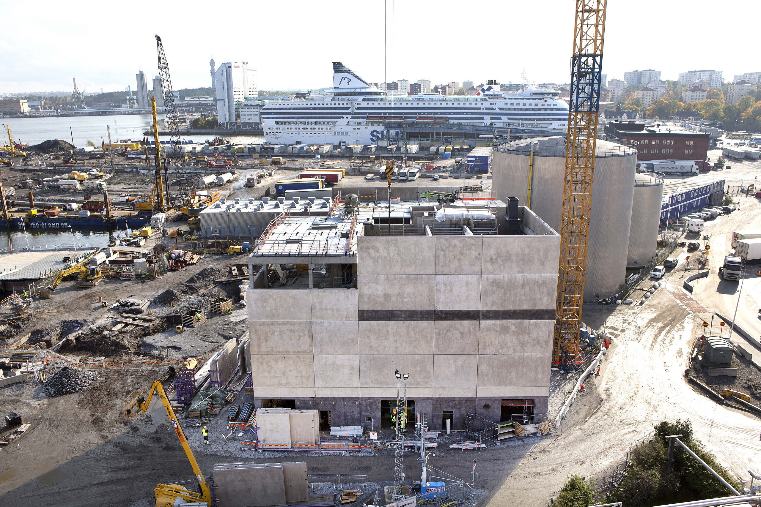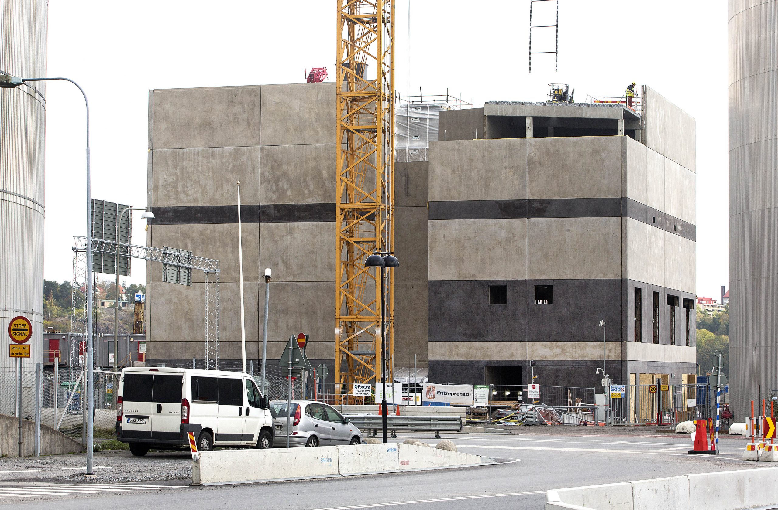 In this building, which is a part of Värtaverkets new biofuel cogeneration plant, left-over material from the forest industry in the form of wood chips is processed before being transported to an underground fuel depot in wait for incineration. The base of the building, composed of dark-tinted concrete, reflects its functional content through a series of openings, while the upper portion of the building is made up of pre-fab elements of lighter colored concrete. A vertical ‘gap’ above the entrance accentuates the elevator shaft through its orange colored accent. The cubic form of the building expresses its role as an important node in the energy production process. From the top of the building extends a conveyor belt to the ash silos where waste-products after incineration are processed.