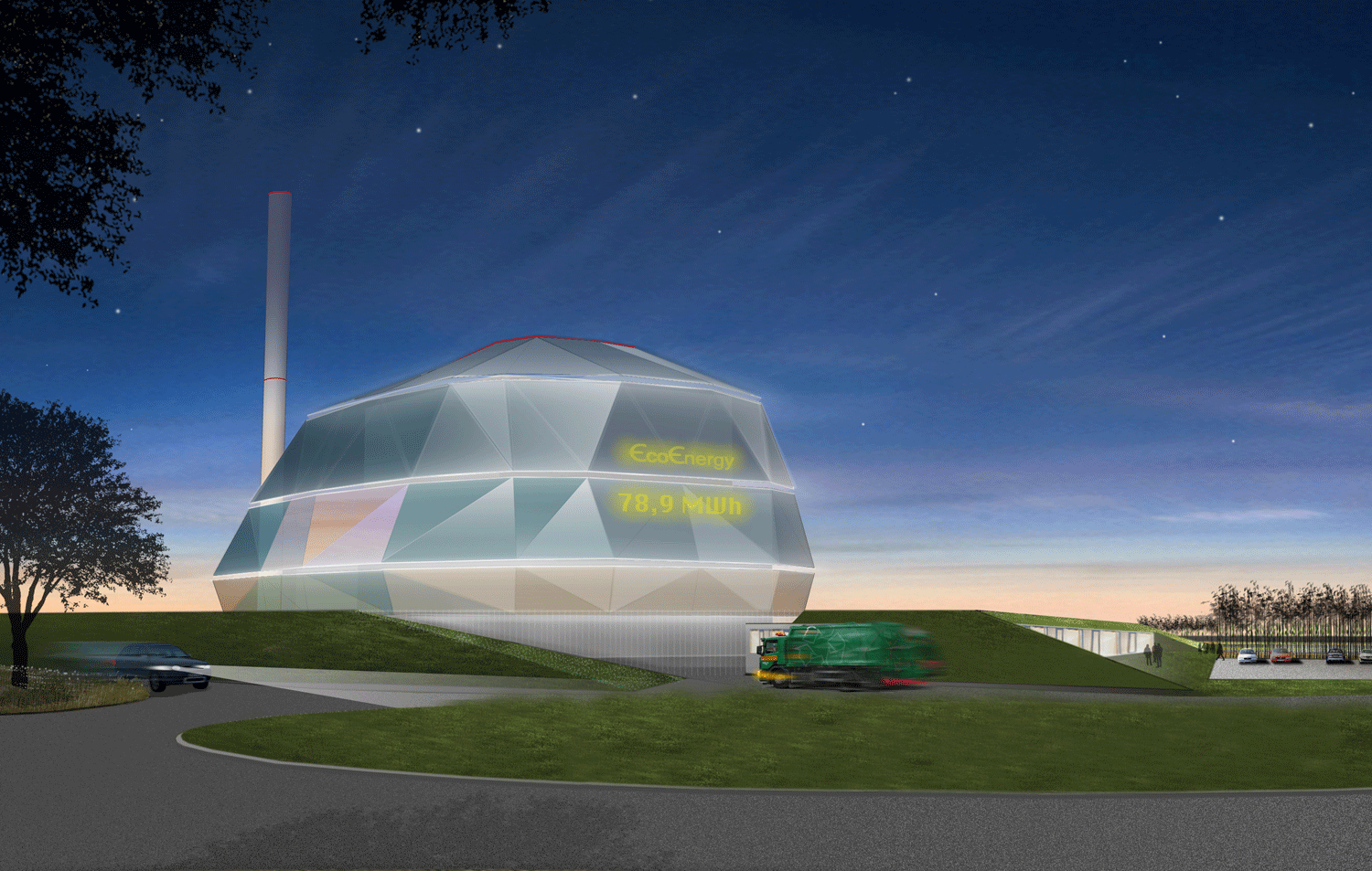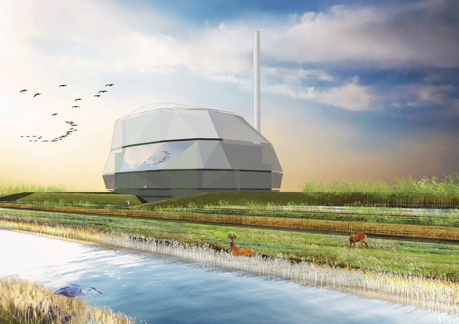 WTE, or Waste-to-Energy is a method of burning waste to produce both district heating and electricity, instead of the traditional methods of waste disposal that mean waste-sites and consequent contamination of the environment. Our winning proposal quickly earned the nickname – Beetle, because of its outer shell that can be likened to a carapace. This protective layer composed of aluminum and glass provides a semi-enclosed environment for workers to access the various parts of the facility.
