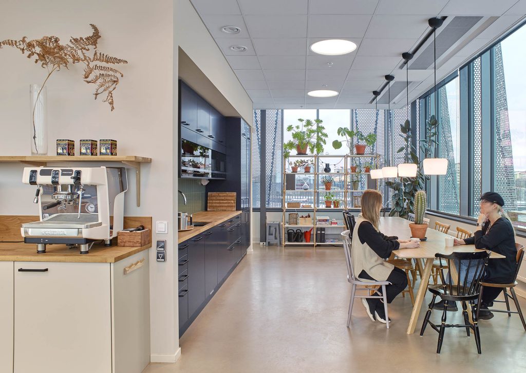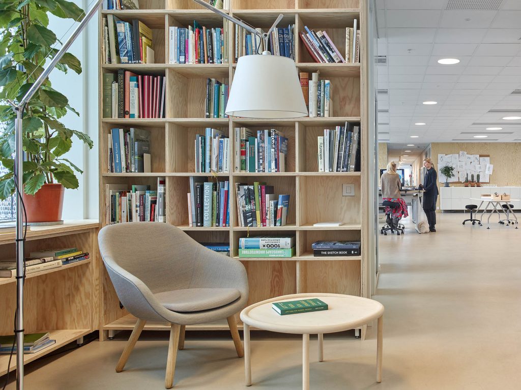 – Idag är det få hos oss som väljer att jobba hemma, vilket för mig är ett tydligt tecken på att vi har en kontorsmiljö som medarbetarna trivs i. Den är ljus, har en bra ljudmiljö och det finns utrymme för socialt umgänge eller om du har behov av att gå undan. I början var det flera som var oroliga för hur de nya lokalerna skulle bli då vi tidigare hade fasta platser och nu skulle bli ett aktivitetsbaserat kontor. Men genom en förankringsprocess internt, där vi diskuterat arbetssätt och medarbetarna fick chans att påverka, har det landat i något väldigt bra och där vi trivs, säger Anna Åkerberg, landskapsarkitekt på Funkia.