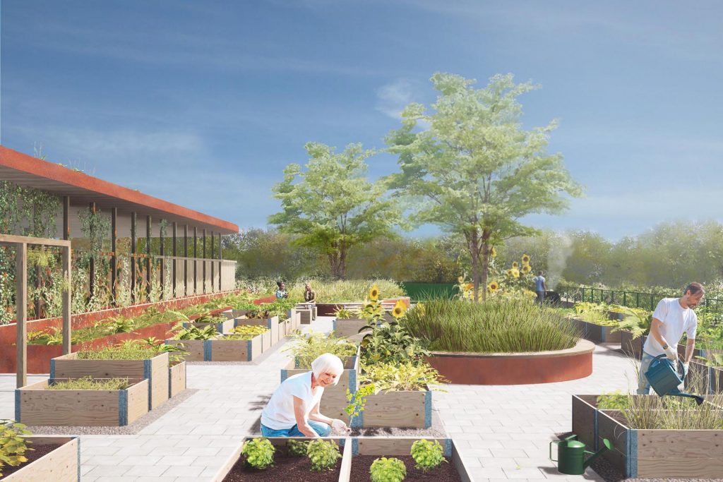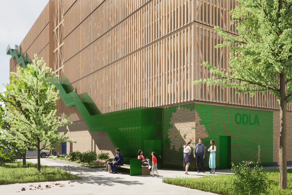 — Det har resulterat i att vi har jobbat mycket med grönska och sittplatser för att skapa en trevlig miljö. På taket planerar vi även för en stadsodling där boende kan hyra odlingslådor, en idé som vi är glada över fick gehör hos Stockholms Parkering och Stadsbyggnadskontoret. Stadsodlingen kommer att kunna nås direkt från gatan via en utanpåliggande trappa eller med hiss via trapphuset, säger Helena Glantz.