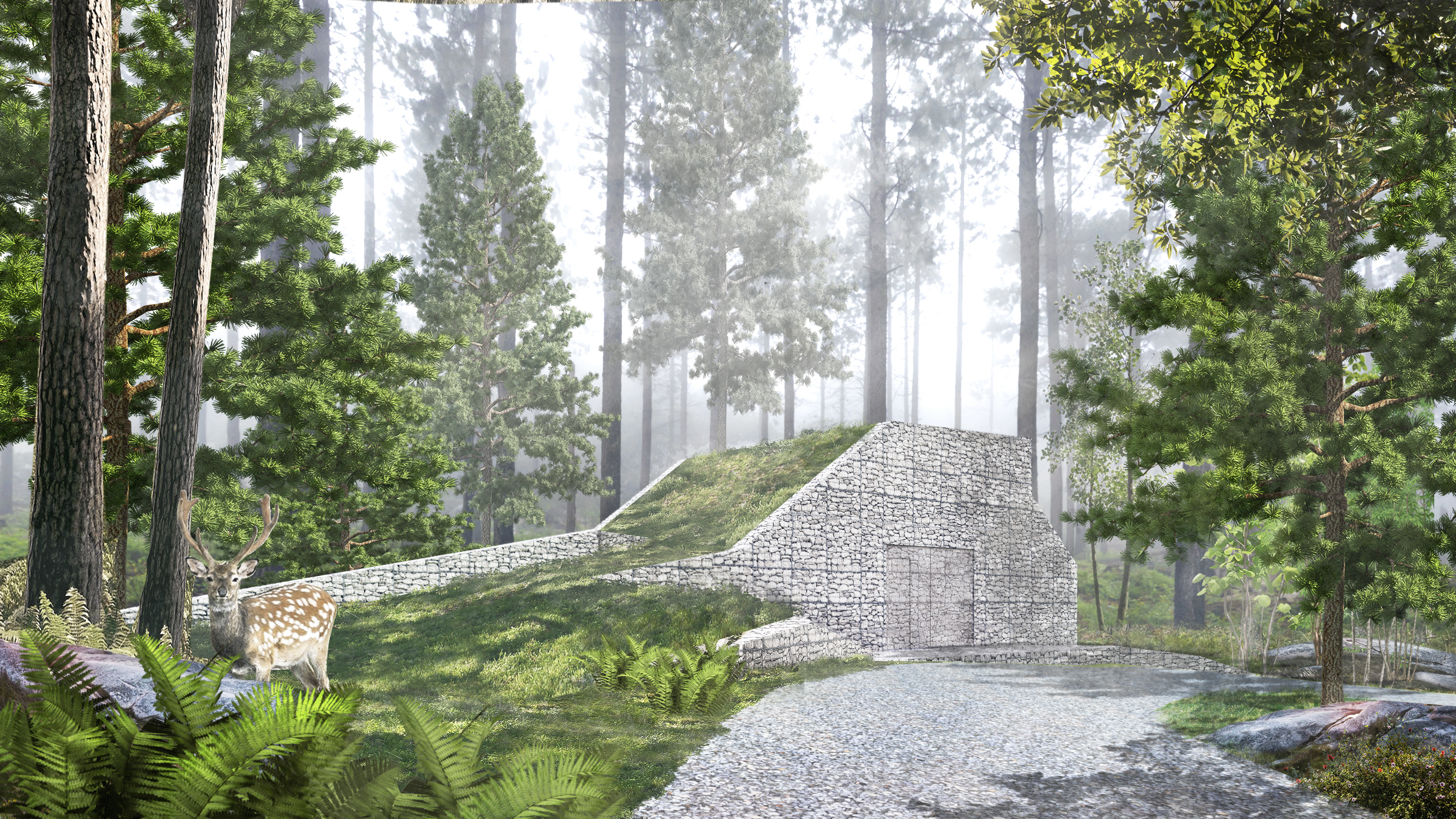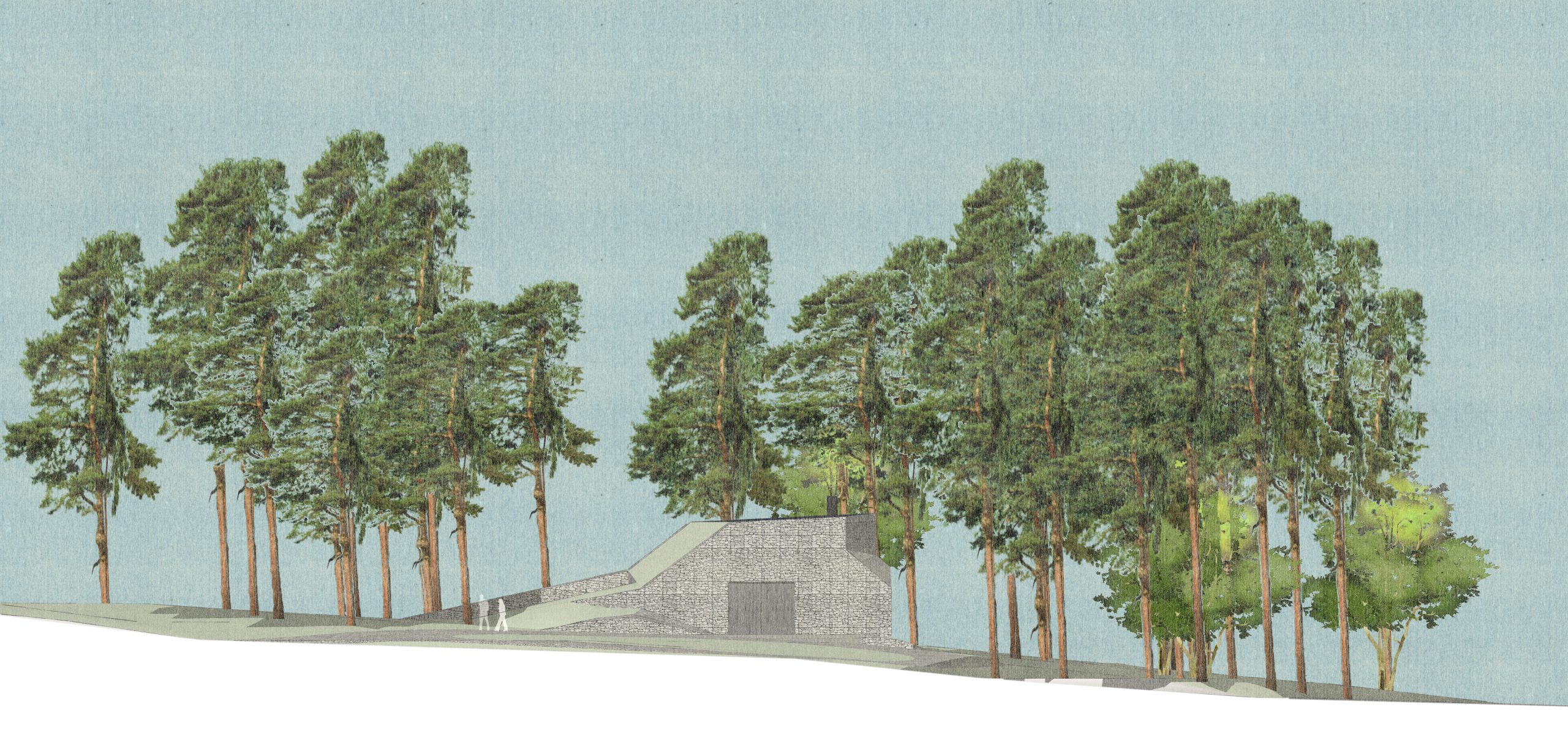 En ås var forminspirationen för denna tekniska byggnad placerad i Rinkebyskogen – ett naturreservat och populärt rekreations- och friluftsområde i Danderyd.