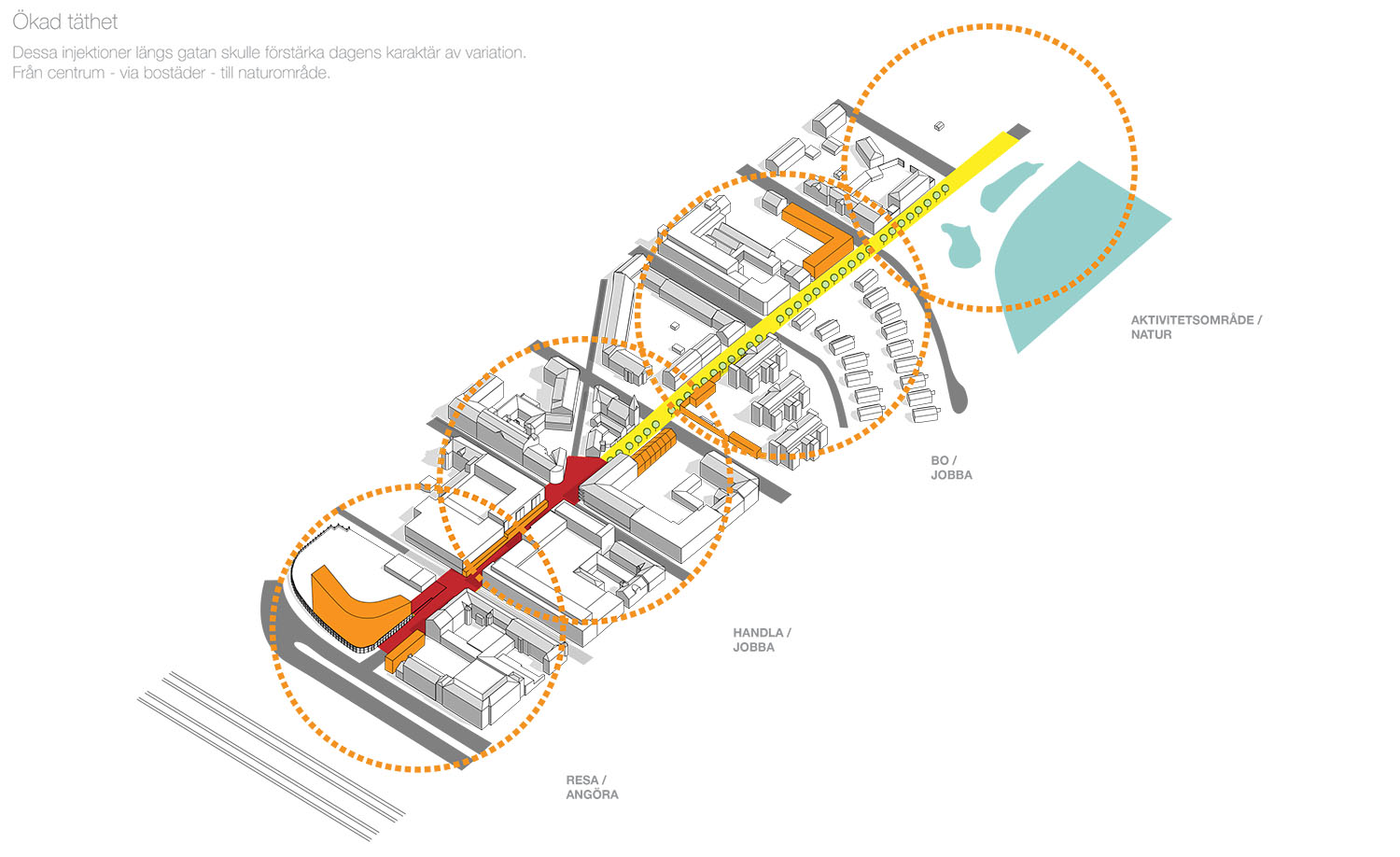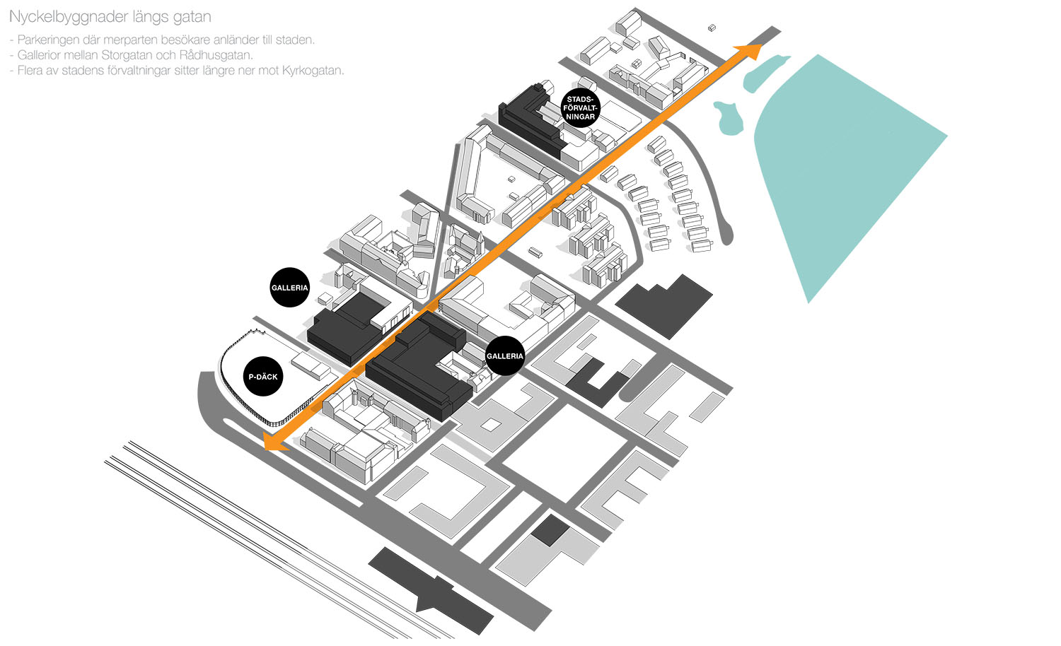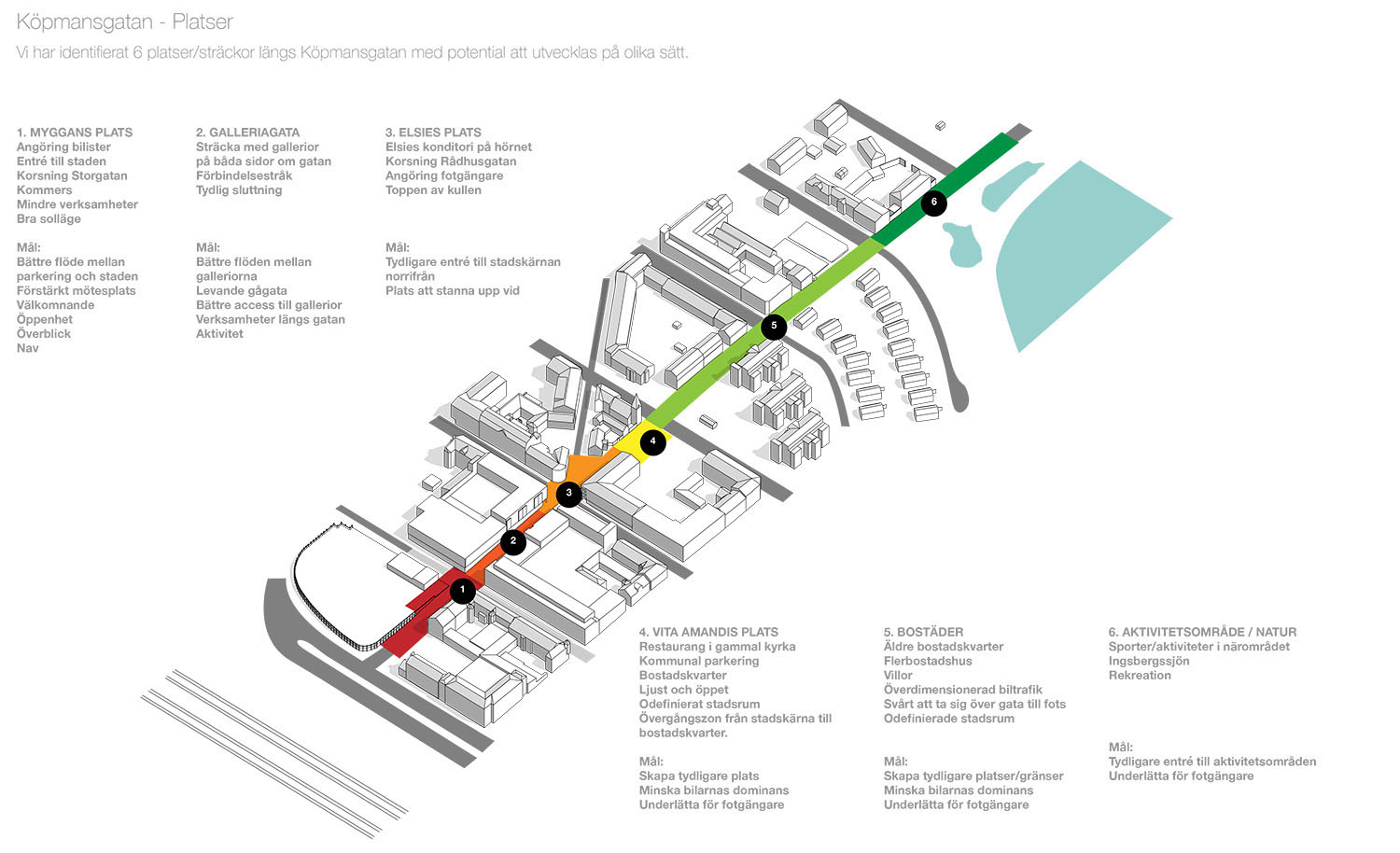Köpmansgatan sträcker sig genom hela Nässjös kommersiella centrum. Urban Design fick i uppdrag att utreda dess utvecklingspotential längs hela sträckan från järnvägen till Ingsbergssjön. I uppdraget ingick att rita ett förslag till utveckling av gatan och torgen i anslutning till Galleria Loket, Galleria Fenix och Myggans plats, som blivit en ny viktig angöringspunkt i staden.