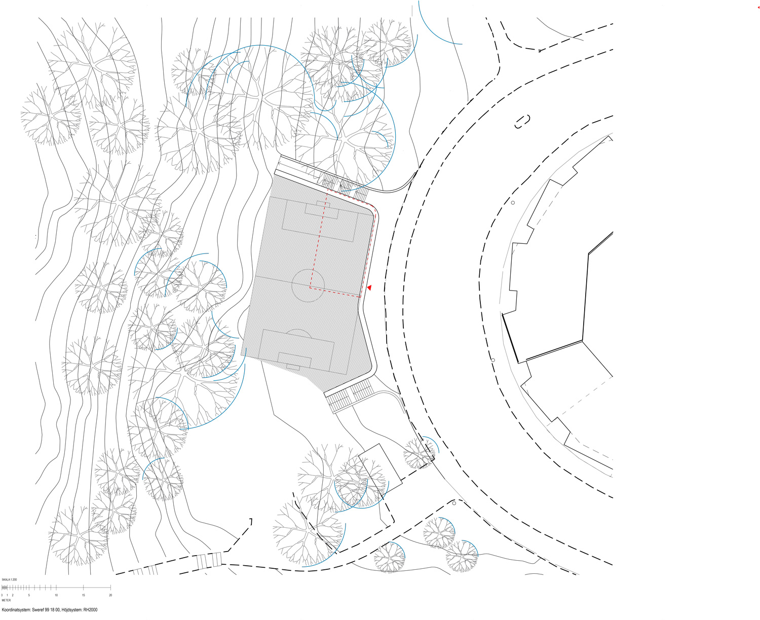 En ny pumpstation för fjärrvärme har smugits in längs Sjöviksbackens östvända sluttning. Fasaden av platsgjuten betong öppnas med en horisontell ”spricka” som visar en bakomliggande, varmt roströd, fasad av träribbor. ”Sprickans” kanter bildar informella sittplatser och på byggnadens tak finns plats för en bollplan, som ska bli en del av en ny lekpark för områdets många nyinflyttade barn och ungdomar.