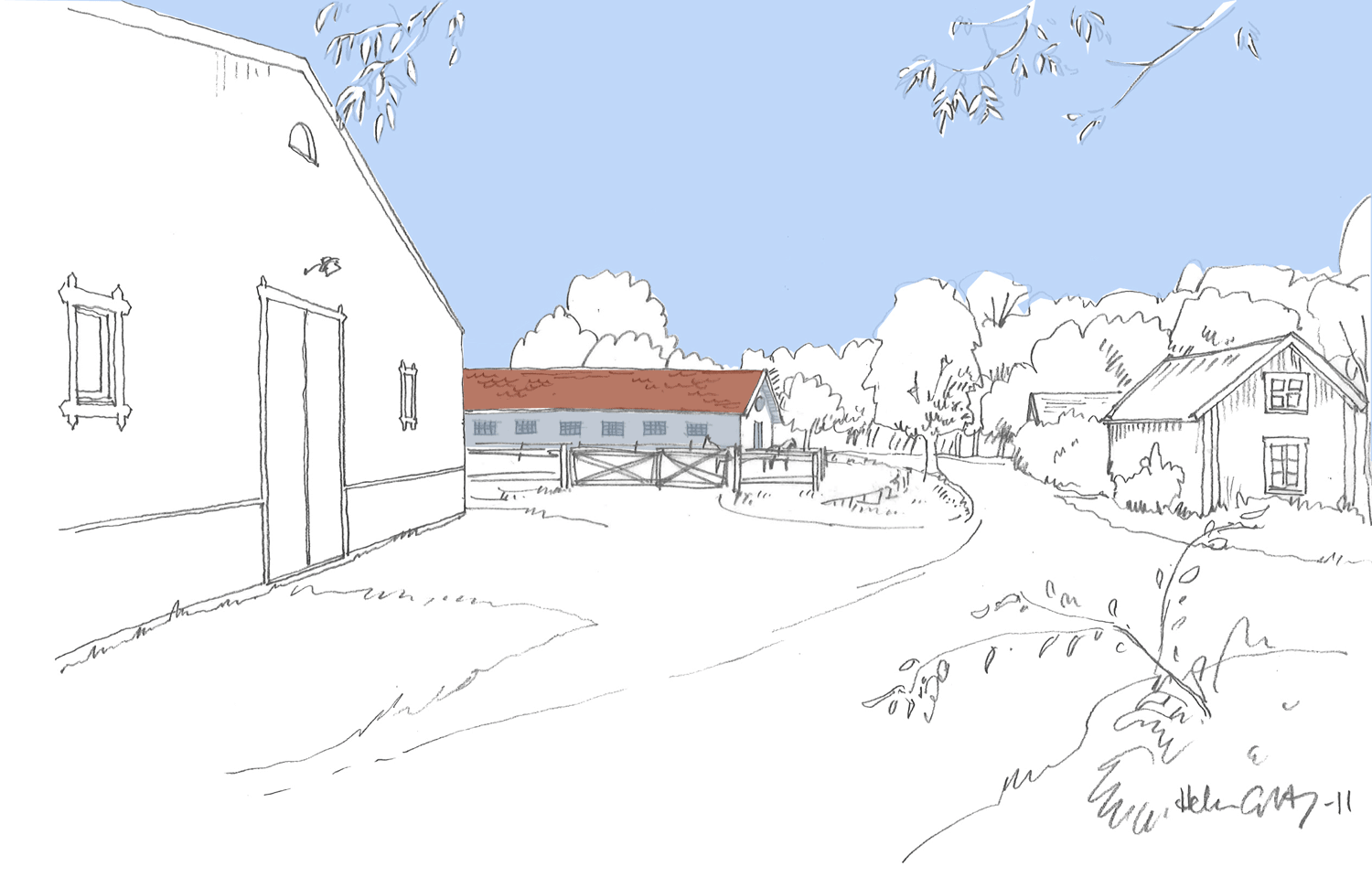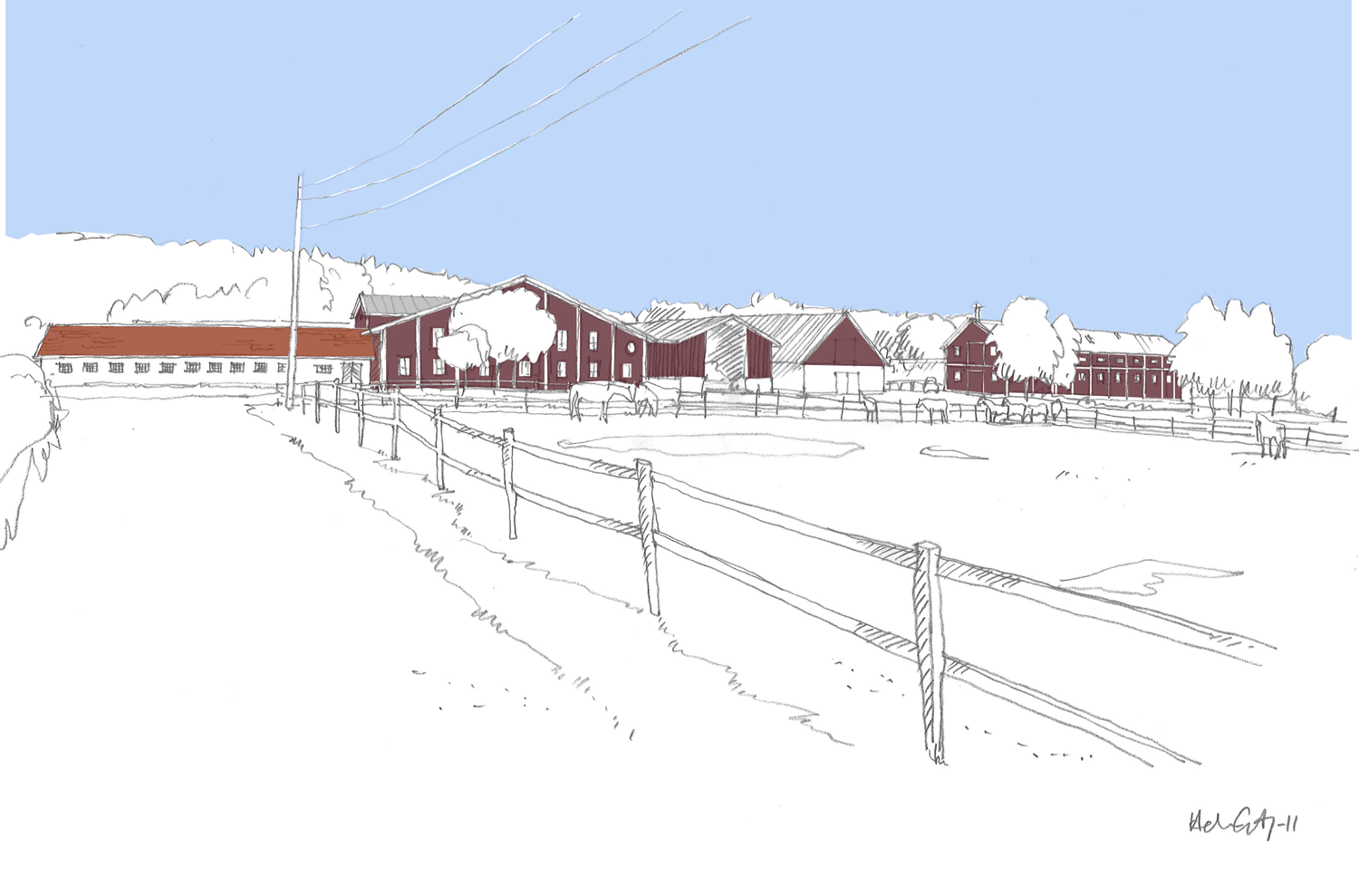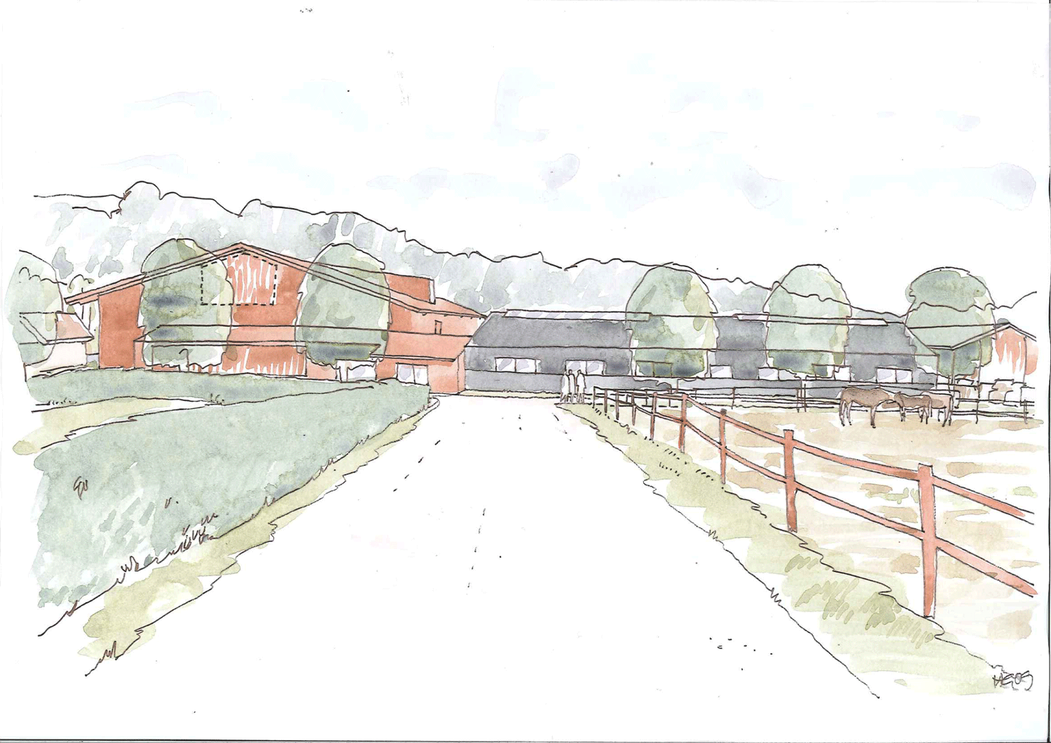 Urban Design gestaltade och projekterade nytt stall och ridhus, samt ombyggnad av ett befitnligt stall på Velamsunds gård för Nacka Ridklubb.