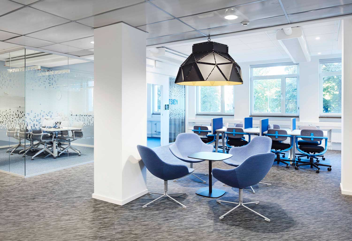 Urban Design har ritat inredningen till Swedish Space Corporations nya kontor i Solna. De tidigare utspridda arbetsplatserna har nu samlats på ett våningsplan kring en gemensam innergård. Medarbetarna har medverkat i hela processen med att forma sin arbetsplats. På våningsplanet under ryms all labverksamheten. I lobbyns utställningsmöbel  visar en pekskärm alla satelliter i omlopp runt jorden just nu. Matsalen ”Space Out” är placerad vid innergården och alla konferensrum är döpta efter kända vetenskapskvinnor och -män.